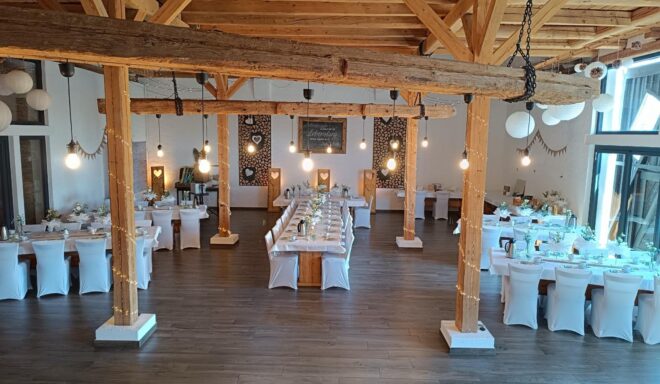 Wunderschöne Event-Scheune mit Außenanlagen, Balkon, Fußbodenheizung/Klimaanlage (für Winter-Hochzeiten), Sound- und Lichtanlage - Freie Trauung in der Scheune möglich.